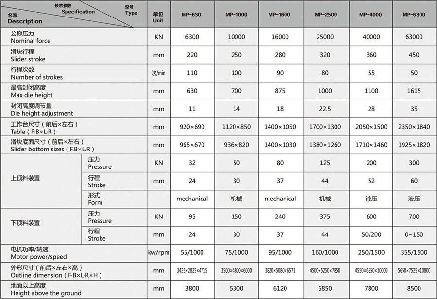 MP系列熱模鍛壓力機(jī)是引進(jìn)德國(guó)先進(jìn)技術(shù)生產(chǎn)的改進(jìn)型系列產(chǎn)品,擴(kuò)大了壓力機(jī)使用范圍。